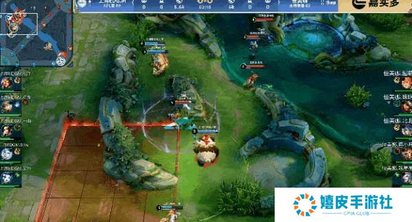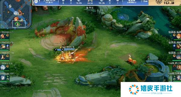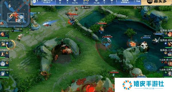 佳美娜卡住河道不给对面回防中一塔,戈娅带着小明越塔秒掉火舞