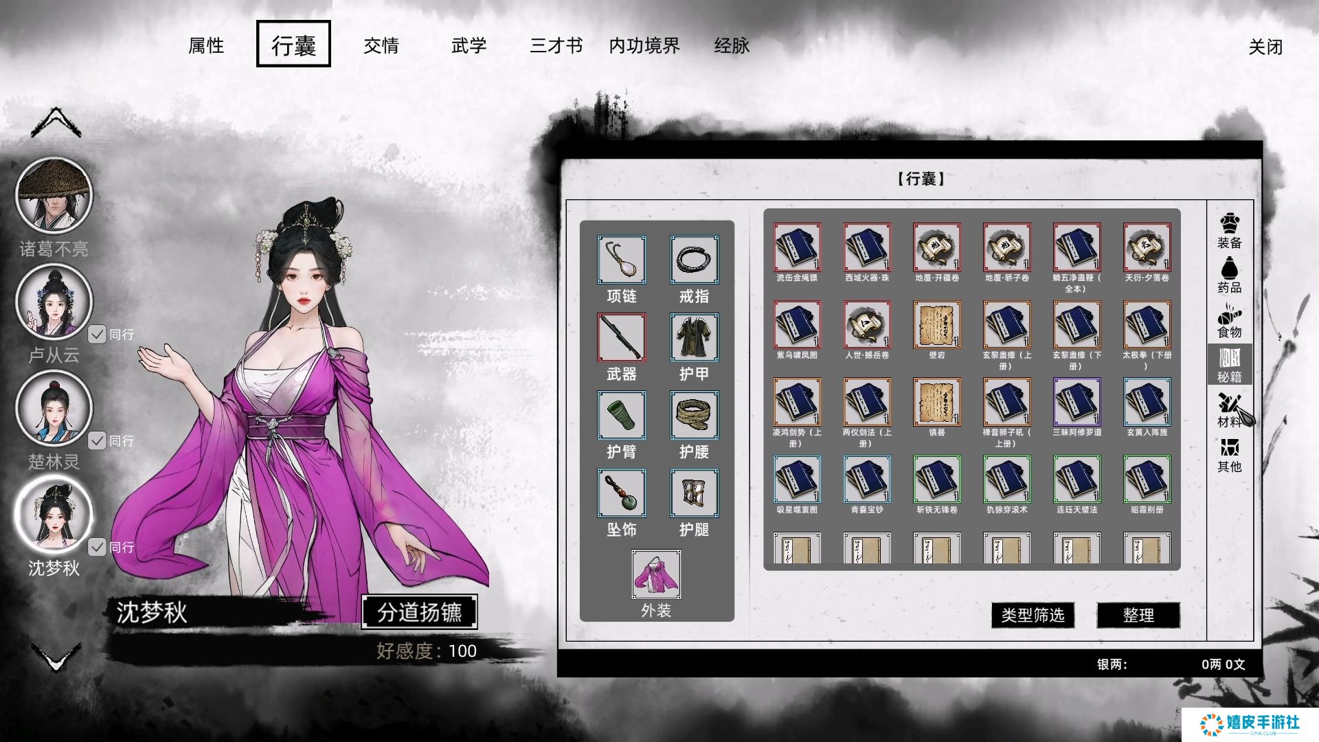 武学心法 突破境界 游戏无等级和职业限制,十余种武器供角色选择(刀剑、棍棒、扇子、拳腿等),每种武器配有独立的武学研本体系。玩家可以自由切换选择武学套路,打通经络,突破境界,提升武学造诣,成为武林最强侠客!