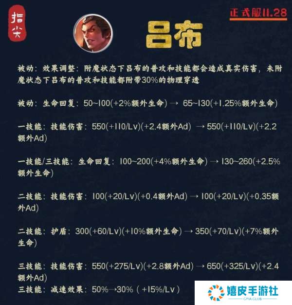 “穿透流”吕布终于登陆峡谷,作为王者荣耀超人气角色,这个加强很多人已经等了太久了。 未附魔情况下,不止是1技能有穿透,普攻和23也有了穿透,且将穿透比例提升到了30%,而其他方面的数值也都全面调整,方向就是出输出装收益要比肉装更高了。