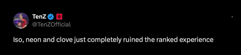 TenZ发文吐槽:壹决、霓虹、暮蝶完全毁了排位赛体验!