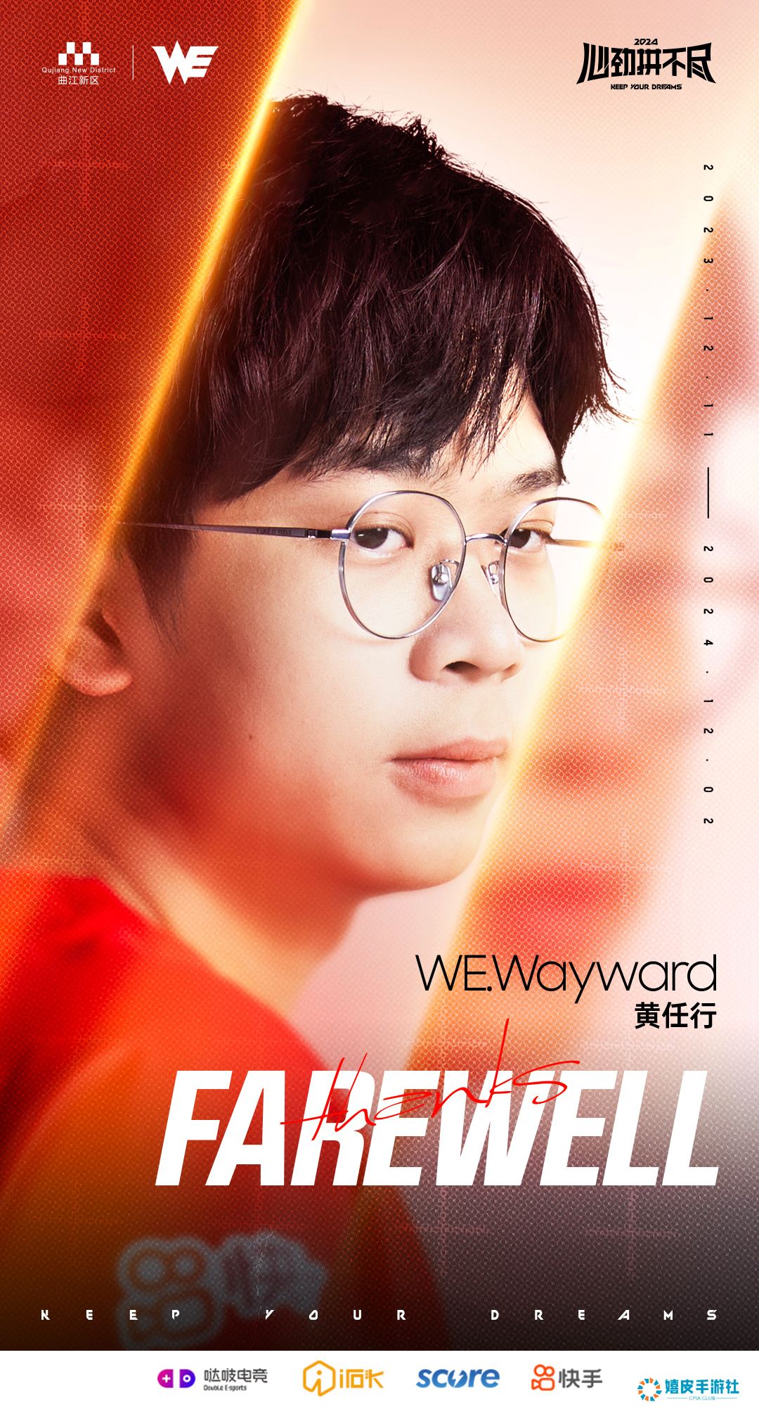 【西安曲江WE电子竞技俱乐部人员变动公告】 经过双方友好沟通与协商,在充分尊重选手个人意愿的前提下,即日起,西安曲江WE电子竞技俱乐部英雄联盟分部队员黄任行(ID:WE.Wayward)断开连接,恢复自由人身份。 Wayward(黄任行)自2023年12月加入WE英雄联盟分部以来,一直随队征战各类赛事。生活中,他总是以笑脸示人,其积极乐观的态度激励并感染着每一位队友,帮助他们在困境中调整心态;在比赛场上,他凭借使用鳄鱼、奎桑提、卡牌等英雄的出色表现,屡屡助力队伍取胜;个人多次登上LPL每日top5、被评为春季赛三阵上单,都是对他努力付出的嘉奖。 2024是我们一起拼搏的一年,感谢Wayward选手效力于Team WE期间的努力和对队伍的贡献,很荣幸能陪伴黄神一起度过出道的第五周年;相信热爱和执着绝不会让努力白费,祝愿Wayward选手在未来的职业道路上能够愈战愈勇,不断进步! 西安曲江WE电子竞技俱乐部 2024年12月2日