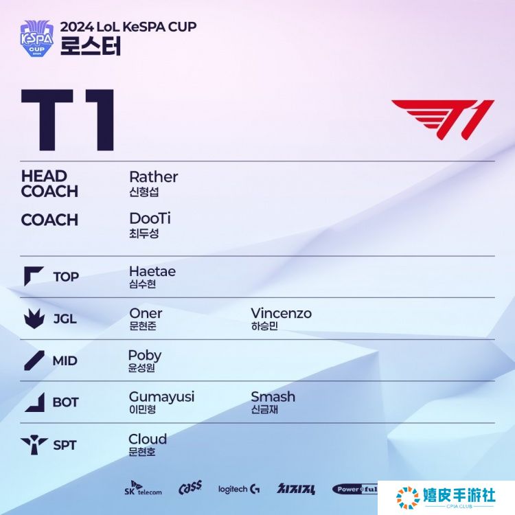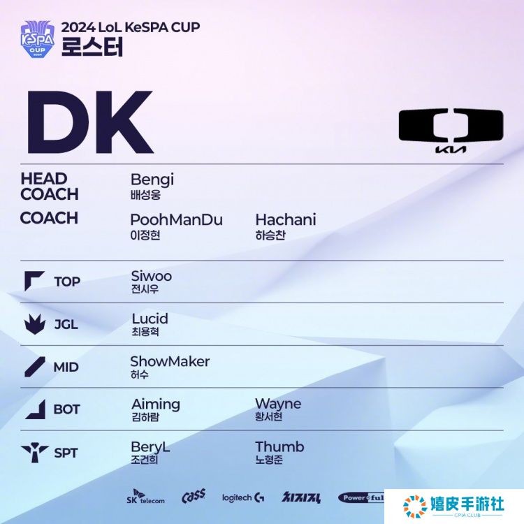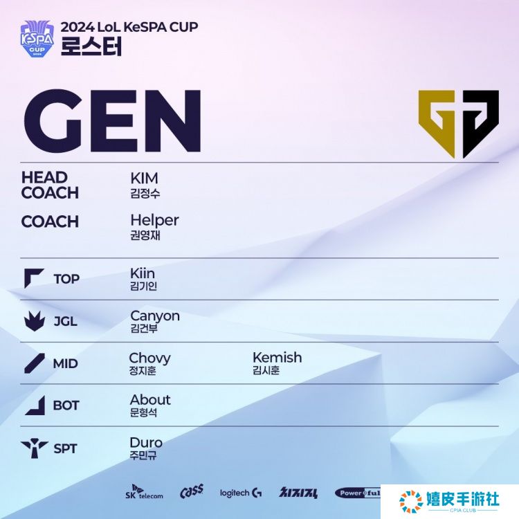 直播吧11月29日讯 KeSPA杯官方公布了将于11月30日开打的KeSPA杯各队大名单,GEN除AD位置外其余主力均参赛,T1方面Oner和Gumayusi出现在大名单内。HLE方面Zeka、Viper、Delight三名主力参赛。