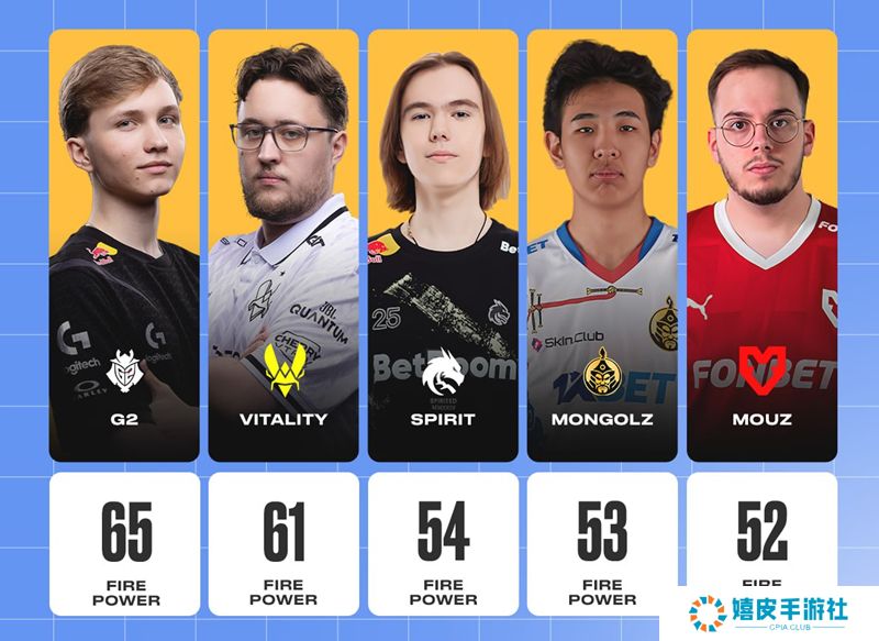 队伍平均火力值排名第三的是Spirit,第四和第五分别是The MongolZ和MOUZ。