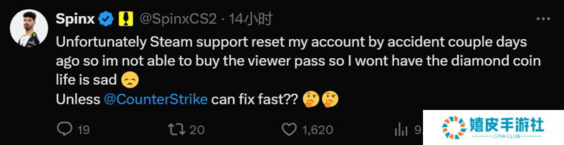 日前Vitality战队选手Spinx在社交平台上发布动态,求助V社。