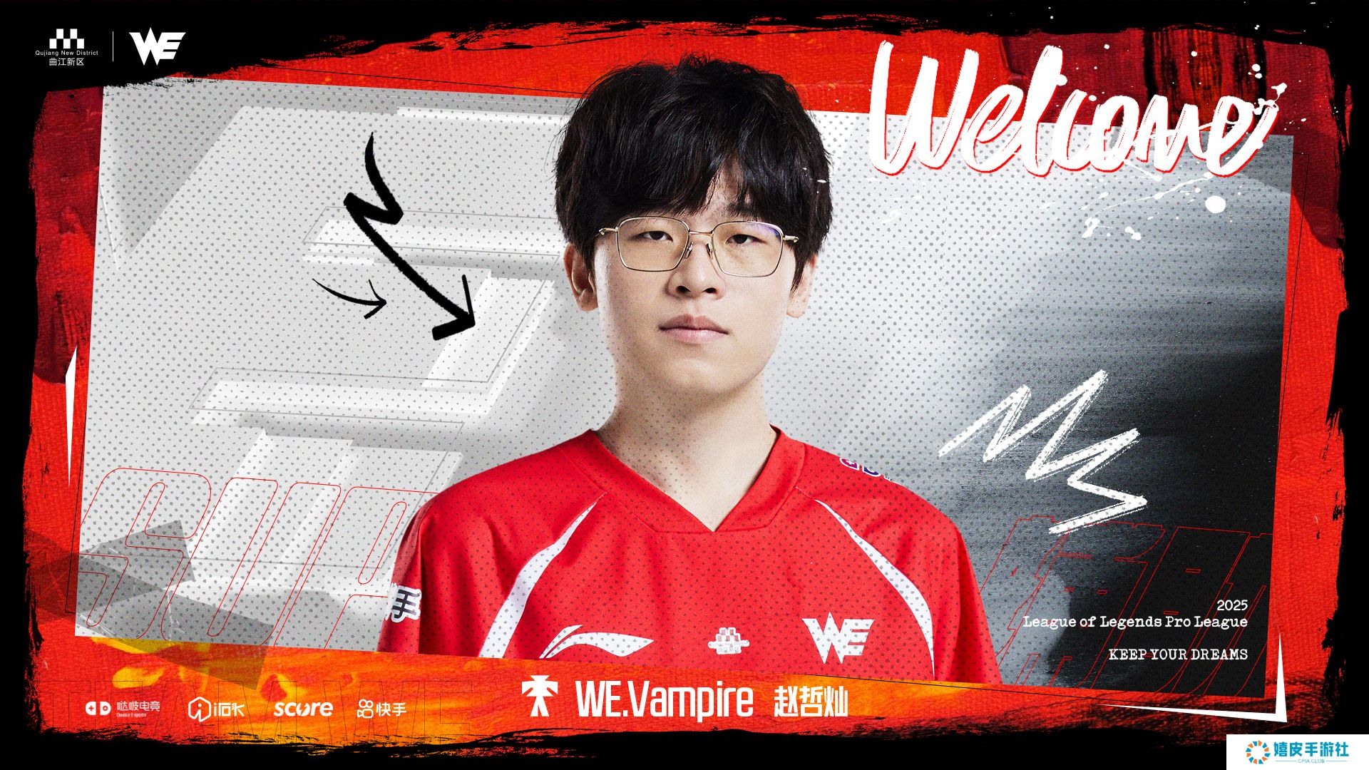 【西安曲江WE电子竞技俱乐部人员变动公告】 经过双方友好协商,我们非常高兴地向大家宣布,即日起,Vampire(赵哲灿)正式加入西安曲江WE电子竞技俱乐部,担任英雄联盟分部辅助位置选手。 Vampire曾效力于iG战队,作为LPL赛场上的新生力量,他能够快速适应比赛节奏,场均视野得分与助攻皆处于联赛前列。他擅长使用蕾欧娜、芮尔、泰坦等英雄,是一位潜力无限的辅助选手。 欢迎Vampire选手加入TeamWE大家庭,新赛季让我们一起向更高峰发起冲击! 西安曲江WE电子竞技俱乐部 2024年12月12日