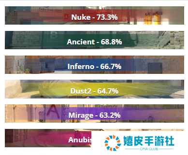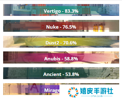 由此还引发一个新的问题,就是Spirit的火力输出太少。就像 Mario Samayoa | malbsMd在采访中所说的,donk在对阵G2时需要面对三道关: Ilya Osipov | m0NESY、他,最后才是 Nikola Kovač | NiKo。而Spirit缺乏对应的火力输出,导致donk总是双拳难敌六手。就像网友戏谑所言:donk五杀稳赢、四杀还行、三杀惊险,不杀... 二、隐含的图池克制 在近六次交手中,两支队伍的交手地图相对固定:Mirage出现6次、Ancient出现四次,Nuke出现四次,Anubis和Dust2各出现两次。Vertigo是Spirit在近半年胜率最高的地图,为83.3%,其次是Nuke,为76.5%,第三是Dust2,为70.6%。