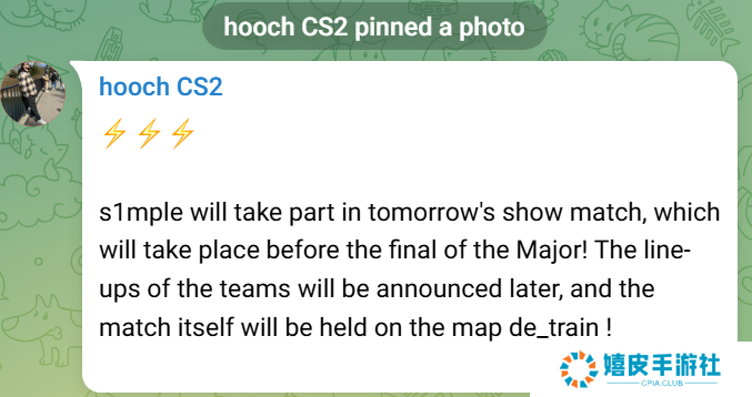 不过刚才hooch又表示s1mple将会参加明天的表演赛,而且他还分享了表演赛的地图,那就是社区预计Major后会加入竞技图池的de_Train。在这张地图上,s1mple也有很多名场面。
