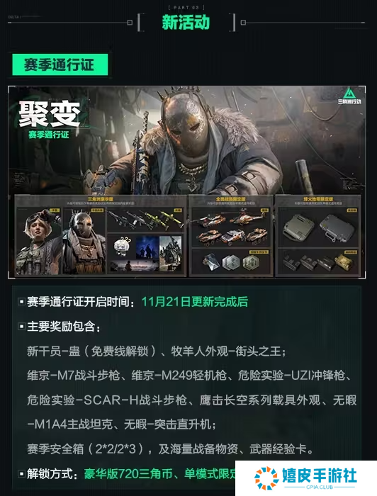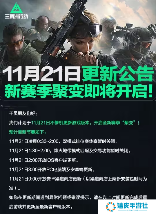 今日(11月20日),国产多人FPS《三角洲行动》官方宣布新赛季“聚变”明日上线,新干员佐娅、新地图堑壕战、巴克什新区巴别塔、新模式合作行动衔尾蛇和海量更新优化明日上线!