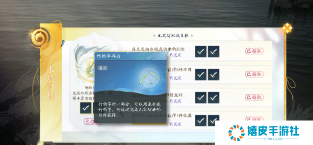 3、玩家也可以通过完成钓鱼奇遇任务可以获取高级的鱼饵。 注:鱼饵的品质越高,玩家在垂钓时获得收藏品的概率越高。