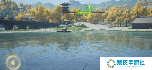 4、鱼上钩时收杆,把鱼维持着绿**间内一段时间即可钓上来。
