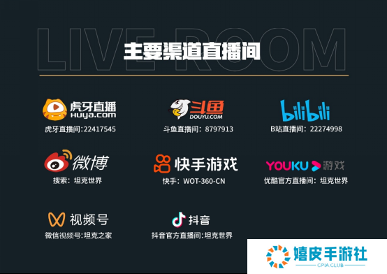 购票即将截止 购票将于11月22日23:59截止,想前往现场感受震撼观赛体验的车长们千万不要错过!购买套票的玩家将获得“第一勇士”作为专属奖励,所有购票玩家都有机会成为天选之人获得“齐天大圣”、“WT12”、“酋长MK.VI”、“神威勇武”、“FV215b(183)”、“黄金59式”、“BZ-176”等天选奖励。现场更有ROG掌机、技嘉机械键盘等大奖等你来拿,奖励超500份! 转播直播间 11月23日-24日比赛期间,您还可以在以下主播直播间观赛! 虎牙主播:中鹏飞、蒙哥马利、芬达、火力、黑鹰、西门、冰麒麟、阿旺