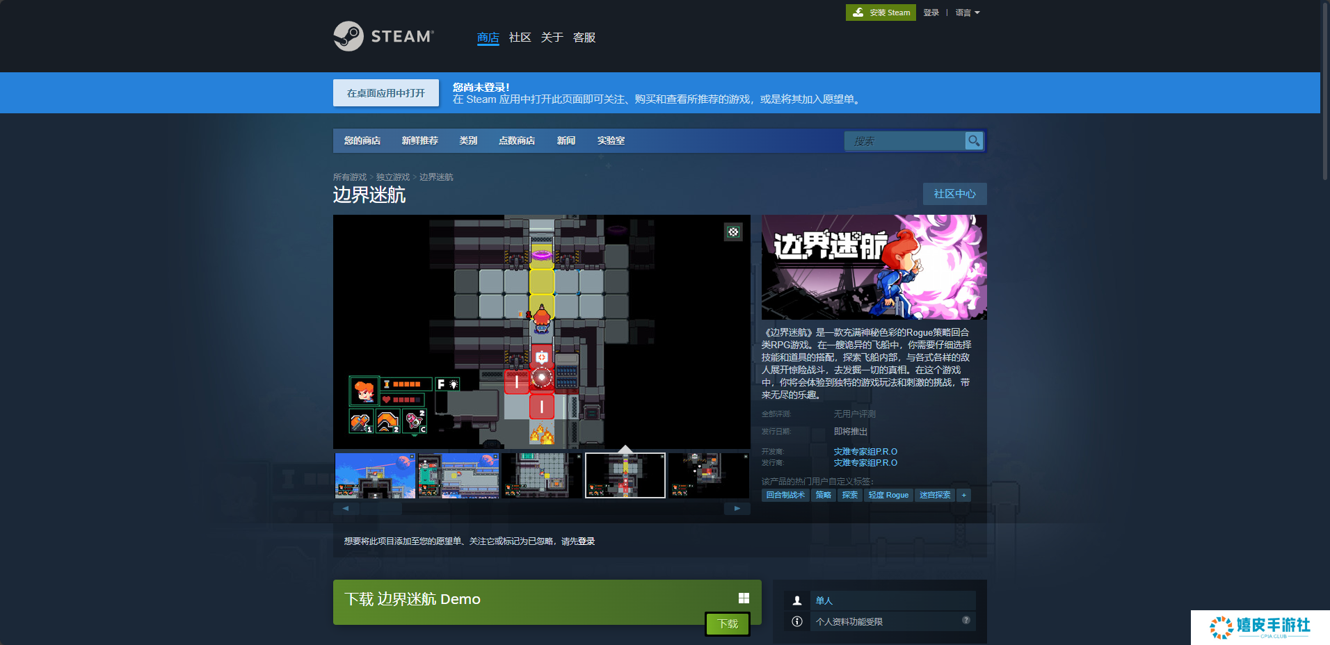 《边界迷航》是一款充满神秘色彩的Rogue策略回合类RPG游戏,而这款游戏的官网地址就是Steam平台的购买页面,进入到这个游戏的购买页面基本上就能知道所有这款游戏的信息。