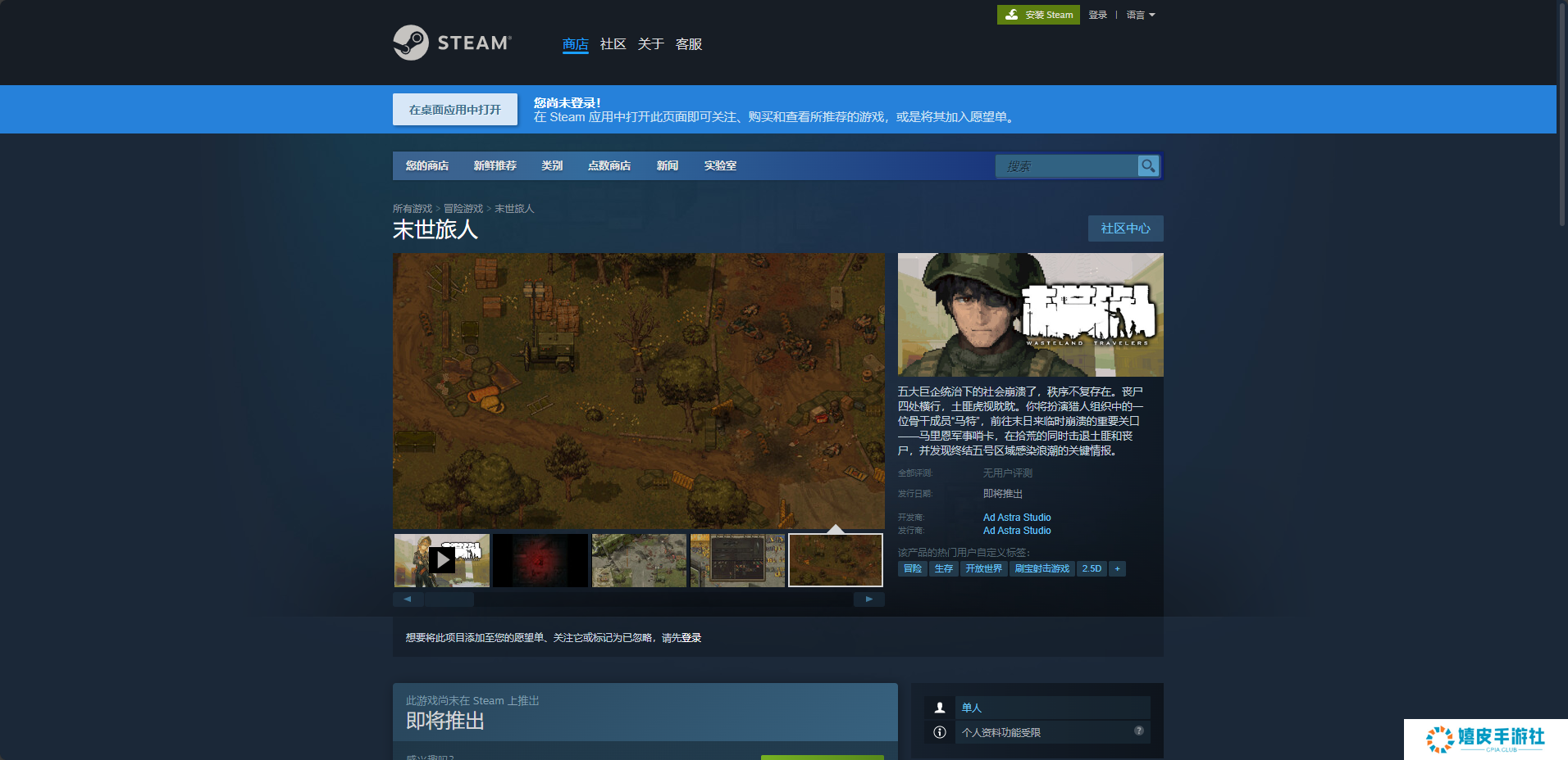 《末世旅人》是一款开放世界的精美像素后末日生存RPG游戏,而这款游戏想要下载还是比较麻烦的,下载的第一步就是安装Steam平台,然后注册账号登录,并且搜索“末世旅人”,然后点击购买,之后点马上开玩即可。
