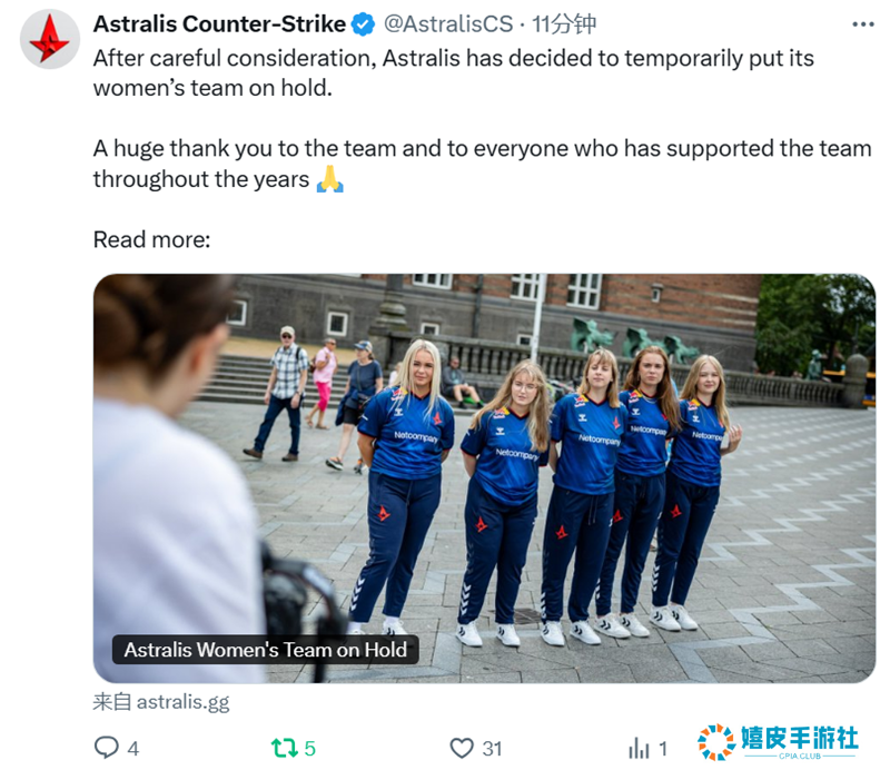 在今天下午Astralis官宣将暂时搁置旗下女子阵容。这也是继 Spirit、 ENCE等之后近期又一家搁置旗下女子阵容的俱乐部。