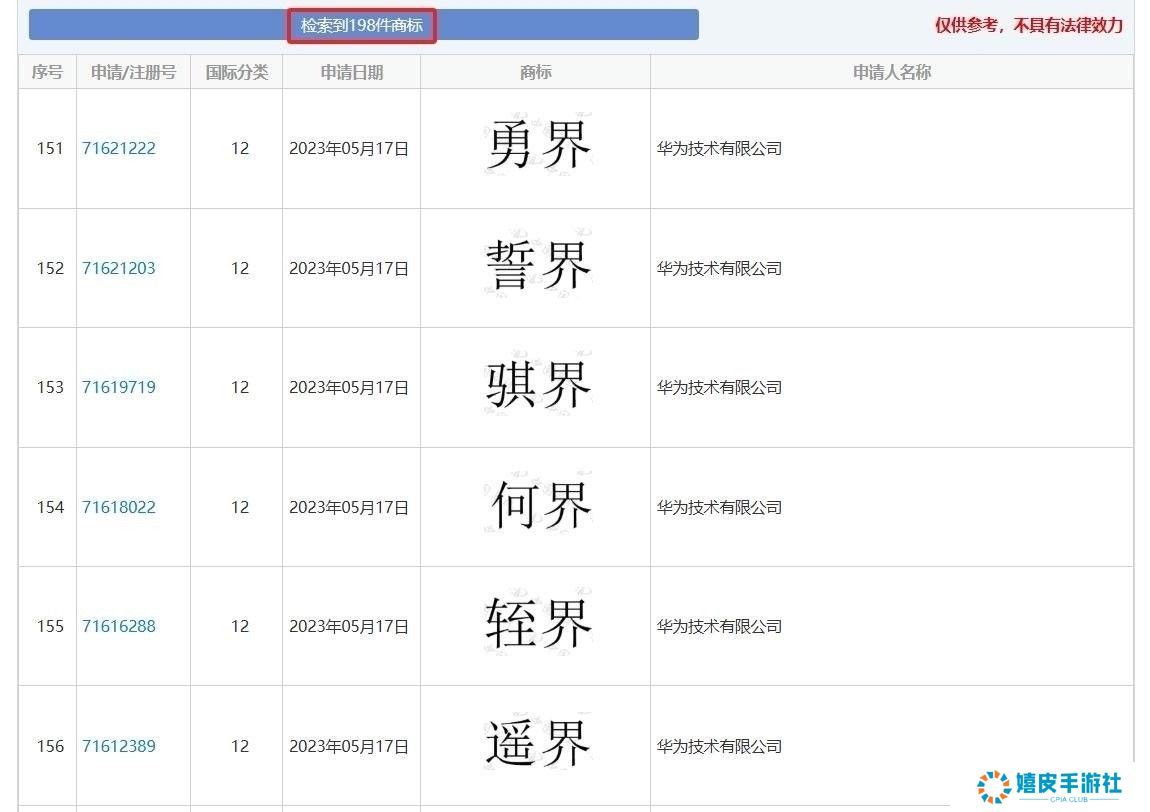 国际分类为12,商品/服务范围包括:电动运载工具、汽车、汽车仪表板、电动汽车、混合动力汽车、电动踏板车、运载工具用轮胎、摄影无人机、运载工具用儿童安全座椅、运载工具内装饰品等,属于汽车大类。 网友调侃道:“这真是牛上天了”、“这已经不是遥遥领先,而是遥遥上天了”。 经搜索带“界”商标关键词,华为目前一共申请了近200个带“界”的商标,除了上文的“仙界”,还包括“勇界、誓界、骐界、何界、遥界”等商标。 对于华为一次性注册上百个汽车类的商标,有网友指出,这应该是华为的防御性商标注册,防止其它人去蹭鸿蒙智行四界的商标热点。