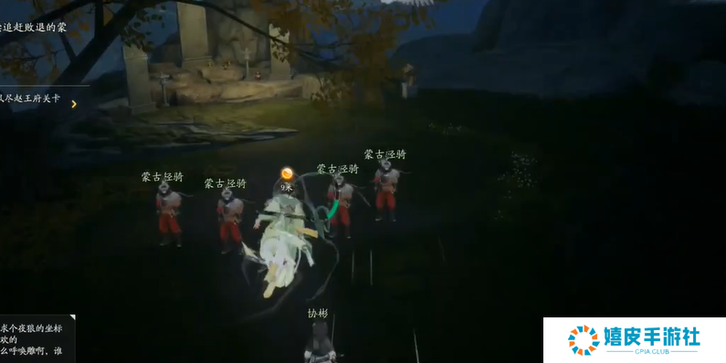 3、查看小道上的脚印,与【协彬】对话,击败蒙古轻骑;