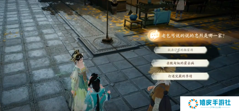 13、前往擂台,与【黎生】对话,选择【一枚银锭】,【忠烈之后】、【抗击辽军的杨家将】;