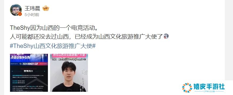 直播吧12月3日讯 近日TheShy被选为山西文化旅游推广大使引发热议,对此媒体人王玮晨表示:TheShy就因为山西的一个电竞活动。人可能都还没去过山西,已经成为山西文化旅游推广大使了