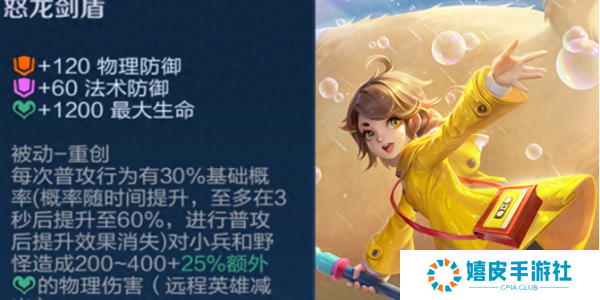 适合英雄推荐 1、云缨 效果:可以增加云缨的发育速度,怒龙剑盾更新之后可以搭配出装是:巨人之握、鞋子、怒龙剑盾、暗影战斧、冰痕之握、血魔之怒;可以频繁触发多段攻击;
