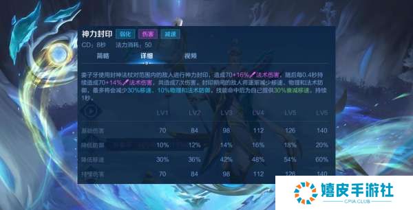 减速减双抗的技能,姜子牙适合用来打一些比较笨重比较肉的阵容,就是因为这个技能。因为我们手并不长,团战把一技能用在对面前排身上就好,加速队友击杀前排的速度。 二技能