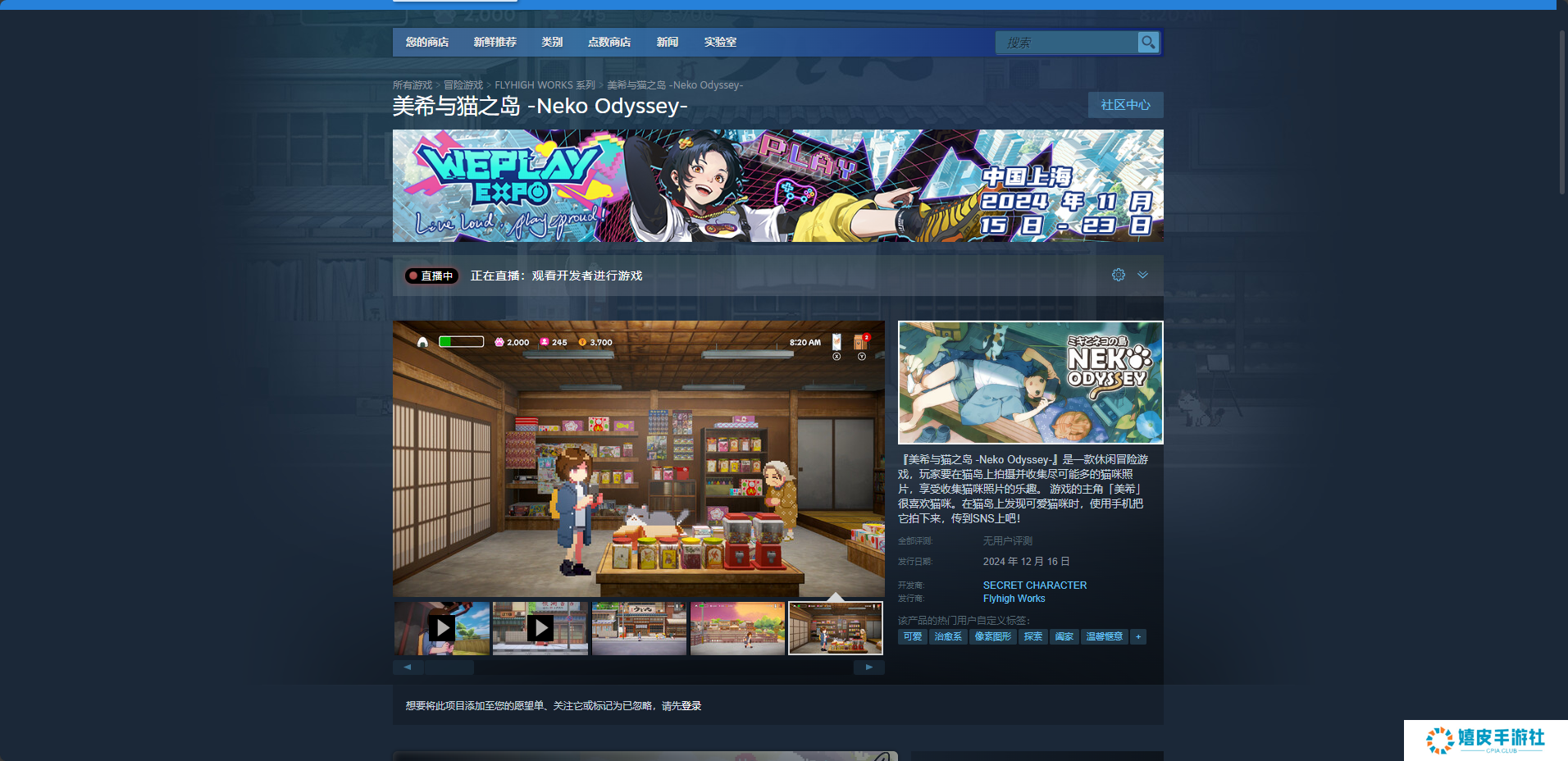 美希与猫之岛怎么下载 《美希与猫之岛 -Neko Odyssey-》下载可以选择Steam平台。 Steam平台需要先安装Steam平台,之后注册一个账号登录,然后搜索“美希与猫之岛 -Neko Odyssey-”进入商店购买页面。 点击添加至购物车,然后付钱购买,最后再次进入商店购买页面点击马上开玩选择文件下载位置即可开始下载。 可以去Steam平台下载,地址是:https://store.steampowered.com/app/2476350/_Neko_Odyssey/。 EPIC平台和PS平台暂未登录,主机玩家还需等待。