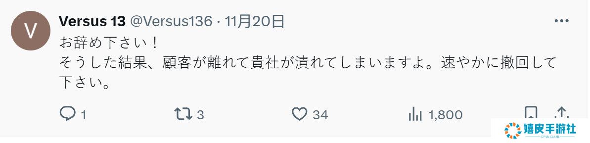 另外一名日本网友表示:“请退出!这样做会导致客户离开,贵公司倒闭。请尽快从名单上撤下您的名字。”