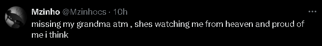 mzinho:“我现在很想念我的奶奶,她在天堂注视着我,我想她会为我感到骄傲。”