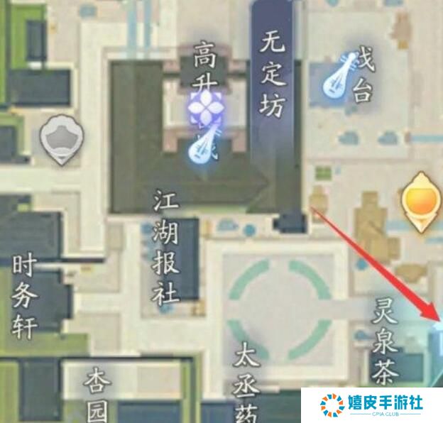 2、然后我们来到无定坊的灵泉茶馆位置。