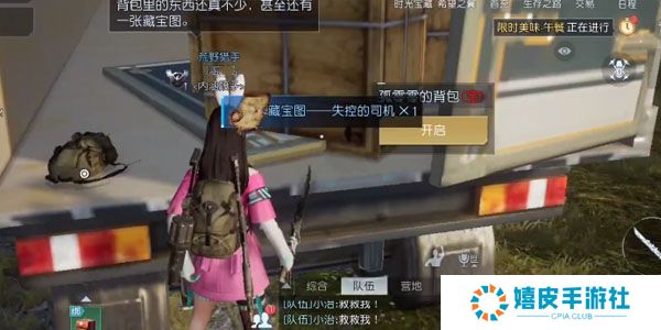2、我们到如图所示墙角这,找到一个背包打开后,即可获得失控的司机藏宝图。
