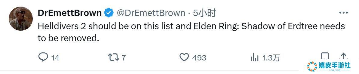 《绝地潜兵2》应该上榜,法环DLC应该移除