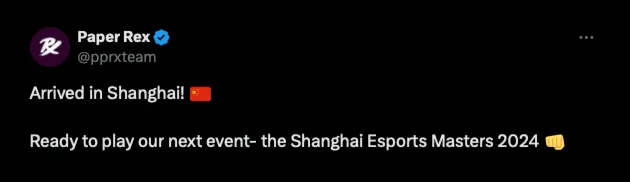PRX官方晒选手抵达上海并配文:抵达上海了!准备好参加我们的下一项赛事了-2024上海电竞大师赛!