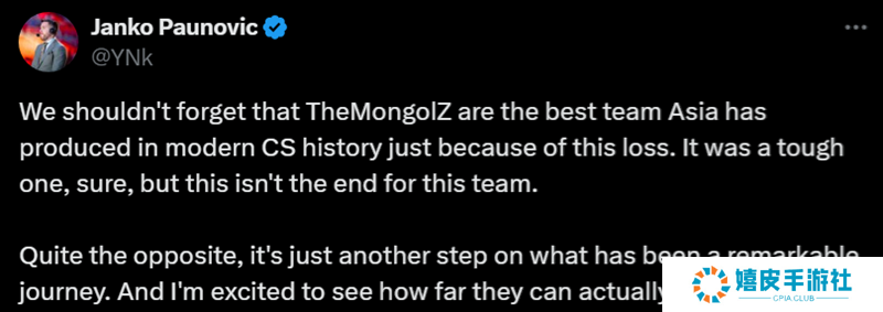YNk:我们不应该因为这次失利而忘记The MongolZ是亚洲现代CS历史上最强的队伍。这场比赛确实很艰难,但这并不是这支队伍的终结。