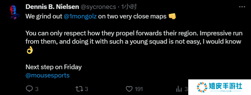 sycrone(MOUZ战队教练):我们两张地图以接近的比分击败了The MongolZ战队。