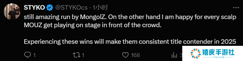 STYKO:The MongolZ的这段征程依旧非常惊艳。另一方面我为MOUZ每次在观众面前的舞台上比赛而高兴。