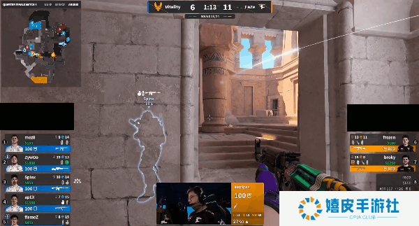 长枪局,FaZe便秘爆弹B区,在烟雾的加持下成功埋下炸弹,后续回访的mezii配合反清闪拿到双杀,随即Vitality补枪到位成功翻盘。赢下胜利后Vitality稳住阵脚展开追分,来到第十九回合半起FaZe瞬间改变节奏,一波提速ropz与rian两人双杀摧毁Vitality的B区防守,占领包点之阿姐进入五打二残局,轻松收下赛点后以13-7赢下比赛。