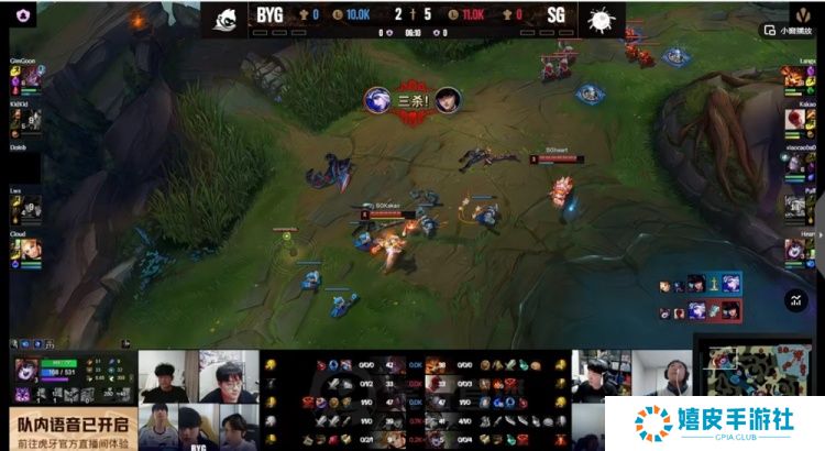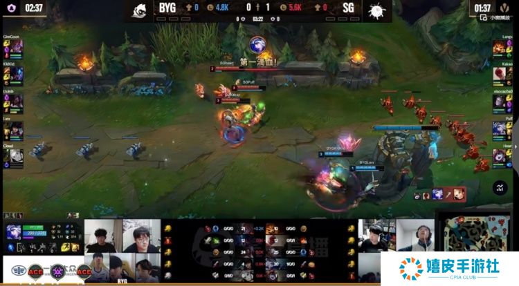 首发名单: BYG:上单GimGoon、打野Kidkid、中单Doinb、下路Lwx、辅助Cloud SG:上单Langx、打野Kakao、中单xiaocaobao、下路Puff、辅助Heart BP阶段: