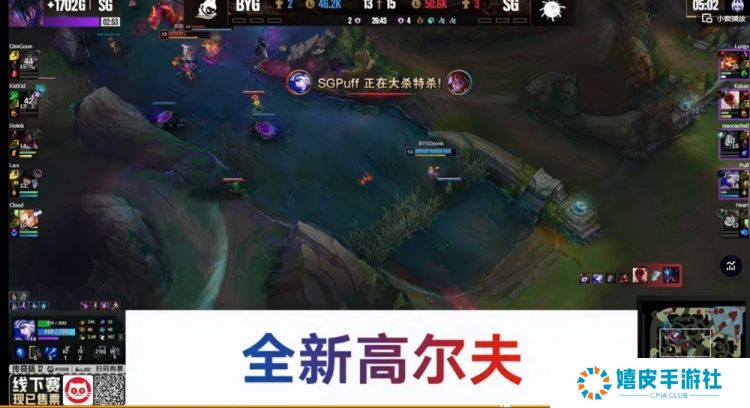 【5:27】kidkid雷克塞绕后gank打出xiaocaobao发条闪现,Doinb阿卡丽跟闪越塔强行和发条打了个1换1!随后上路交锋没闪的Cloud拉克丝被强杀,kidkid雷克塞支援配合Lwx女警,强行换掉了三杀的Puff艾希!这波相当于SG打了个2换4!但是随后BYG抓死Heart璐璐之后拿下2条巢虫!