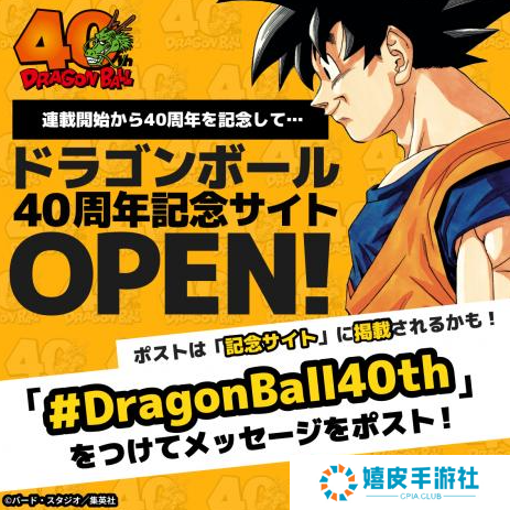 11月20日今天,日漫界不朽的丰碑,《七龙珠》迎来连载40周年纪念日,官方特别开通专门主页,征集粉丝的感想和活动建议,今后将陆续开启多种纪念策划和活动,敬请期待。
